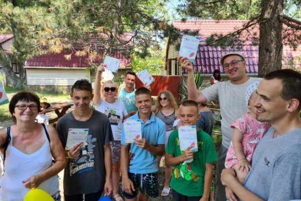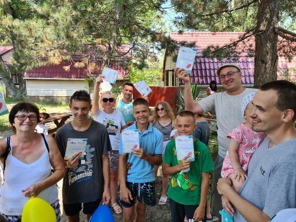И еще: название смены выбирали из нескольких вариантов. Семьи предложили романтичное название: «Мечты сбываются», реалистичное: «Южный ветер» и иронично-оптимистичное: «Робинзоны выживают везде». Душевный настрой всех участников склонил к выбору названия в пользу романтичного. Как оказалось, не зря. Мечты детей сбылись. Многие — впервые увидели море. Родители отдыхали вместе со всеми членами семьи, отдых получился незабываемым и доставил много счастливых минут.